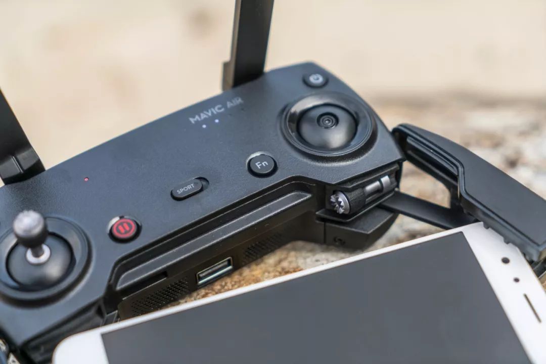 不只是飞行器,“御”Mavic Air 的遥控器亦采用人体工程学折叠设计,手柄展开的同时可夹持手机,握持手感舒适;摇杆可拆卸并放置于遥控器内,整体占用空间进一步缩小,收纳更方便。
