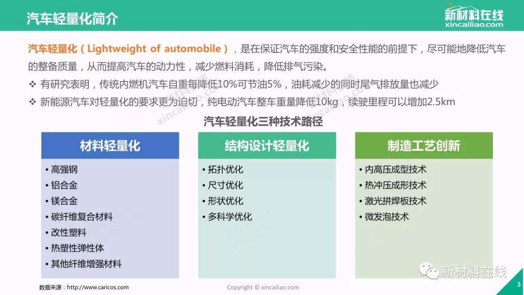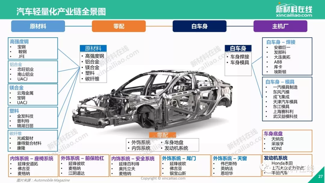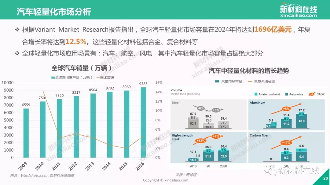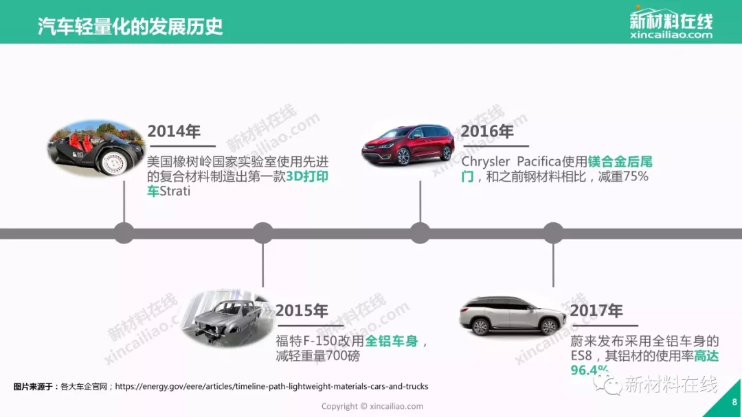 不止宝马、奥迪、福特、通用、大众这些国际汽车巨头,国内车企如北汽、吉利、长安、蔚来、奇瑞、福田等也加入汽车轻量化研发的大军——轻量化,毋庸置疑已成为当今新车研发的焦点。那么,2018年,汽车轻量化市场究竟是怎样一种近况呢?