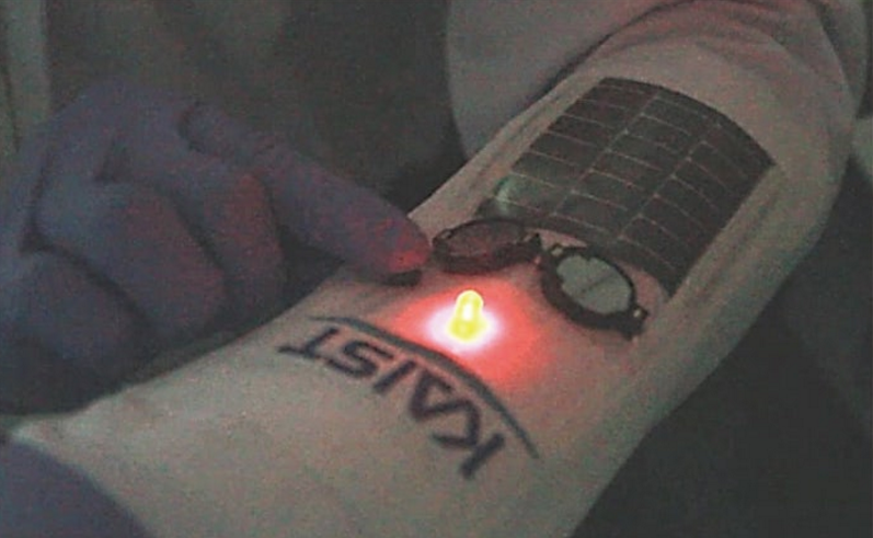 在测试中,该团队将两个电池连接到一个柔性光伏电池上,并且能够为LED供电,而整个套件像套筒一样穿着。该设备可以使用低功率充电系统进行快速充电,因此可以应用于便携式电子设备。”