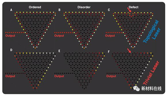 能够表现出拓扑不变量的物理系统大都天然地具有抵抗扰动的稳健性,例如拓扑绝缘体中所体现出的—即能够表现出稳健电输运的材料,可以免于缺陷和无序引起的散射。近年来,在光子学领域开展这些现象的努力十分活跃。Bandres 等人展示了一个非磁性拓扑绝缘体激光系统,展现了空腔中的拓扑保护输运。它的拓扑性质引生了单模激光对抗缺陷的稳健性,以及相比于拓扑微小对应物更高的斜率效率。而且,通过由 S-手性微谐振器组装的系统进一步探索了有源拓扑平台的特性,强化了预先没有磁场的单向激射。这项研究工作为实现具有激动人心的特性和功能的有源拓扑设备铺平了道路。(Science DOI: 10.1126/science.aar4005)