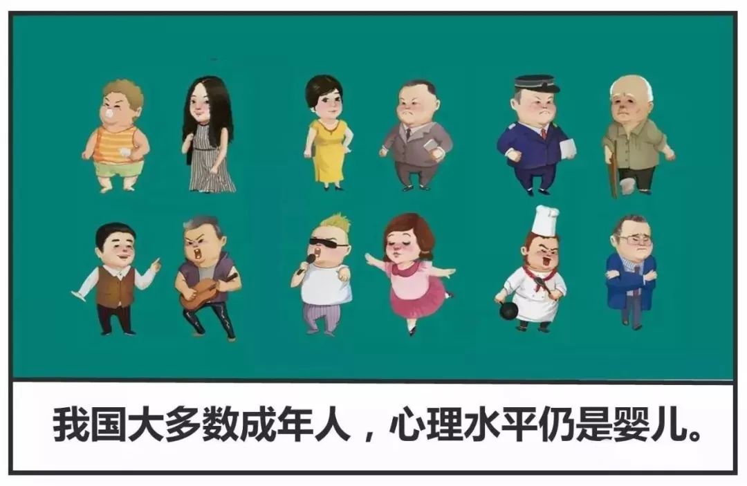 于是,在中国就产生了一种国民症状,叫做巨婴症,临床表现是:智商在线,情商着急。用《巨婴国》一书里的话来说,就是:“我国大多数成年人,心理水平仍是婴儿。”