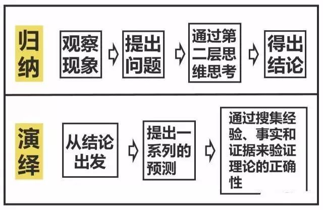 归纳:观察现象,提出问题,通过第二层思维思考,得出结论;