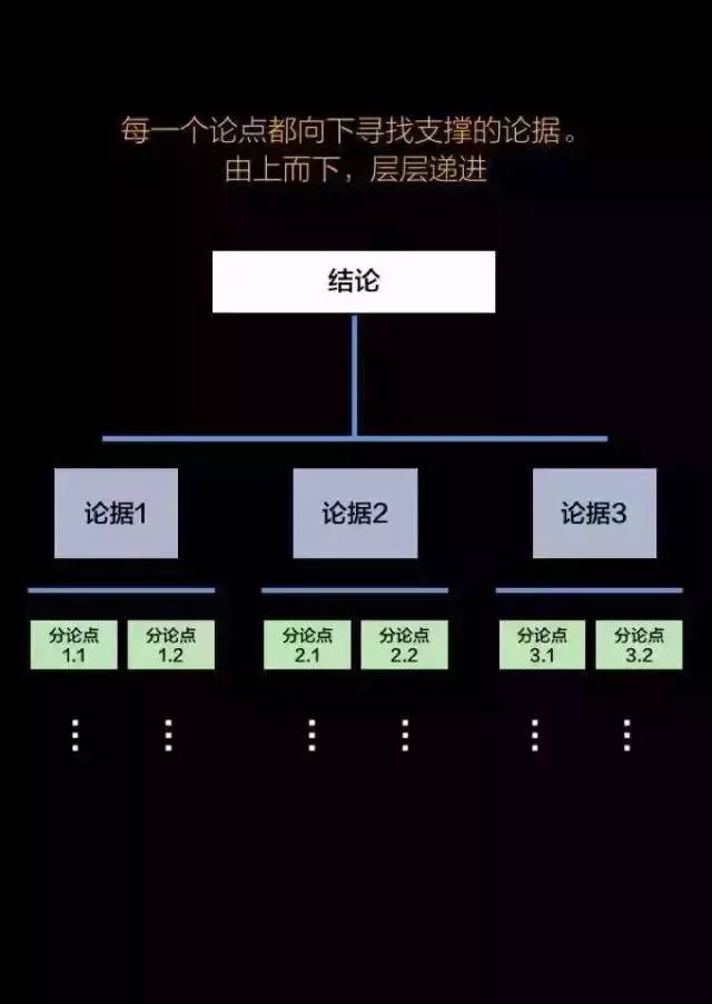 当阐述完核心观点之后,接下来需要进行解释,即“为什么这么做”。就像写论文一样,首先是核心论点,接下来是支持核心论点的分论点,然后是二级分论点,依次向下排列。