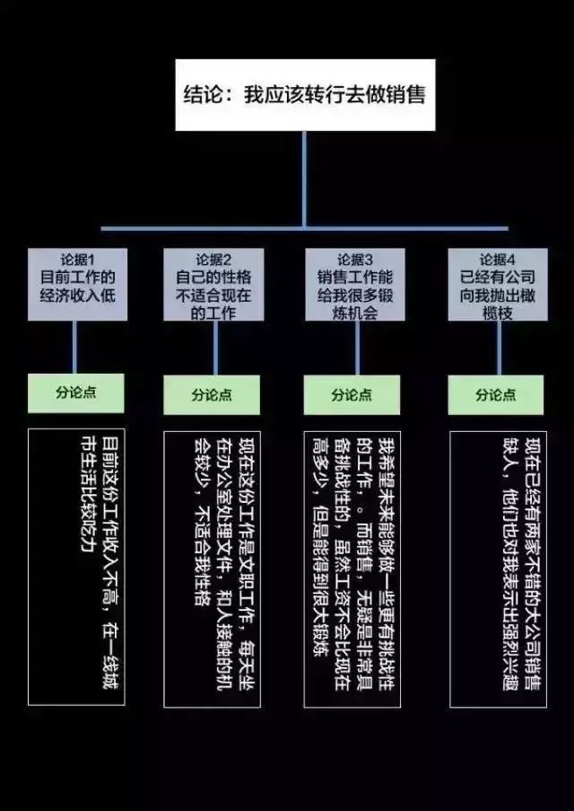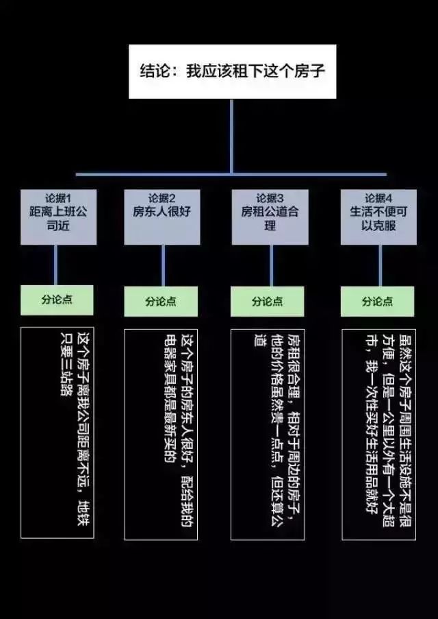 无论是谁,都会喜欢这样的陈述方法。这也是为什么,当你给领导汇报工作的时候,他们绝不可能听你长篇累牍的解释分析,他们只会听你的结论,或者解决方法。当他们有兴趣的时候,会追问细节,当他们很忙的时候,他们只需要听到最重要的东西。