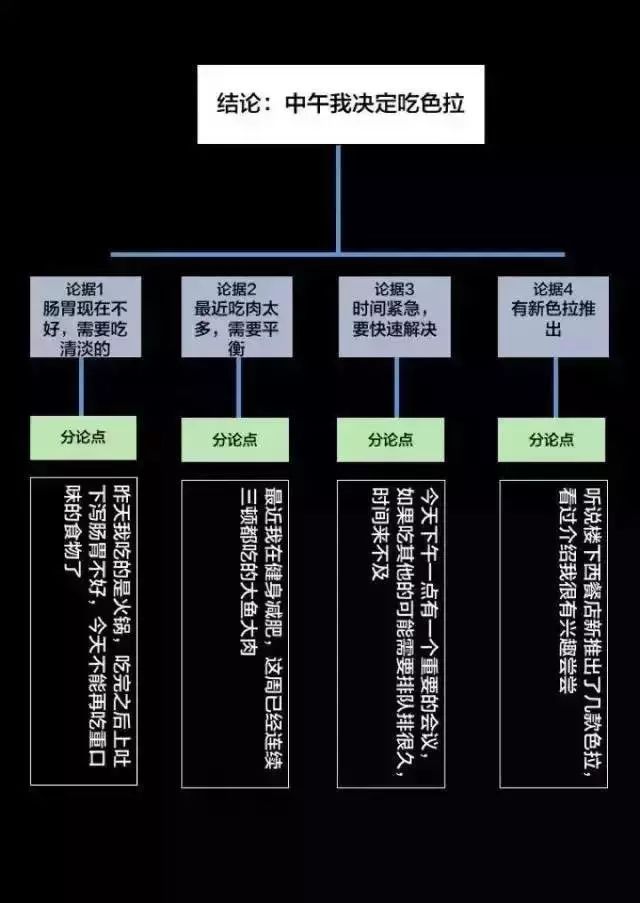 “演绎归纳和MECE”,是你的分析思考过程;“先讲结论”,是你思考完以后的表述方法。先讲结论的人,能够在一开始就抓住别人的注意力,接下来通过层层递进的方式论证结论的正确性,听众就不会迷失方向。