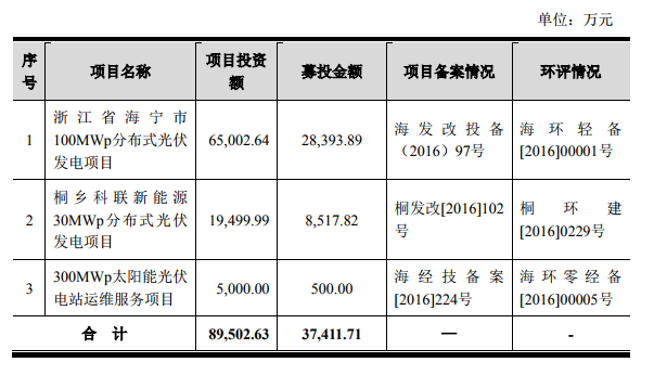 “浙江省海宁市100MWp分布式光伏发电项目”和“桐乡科联新能源30MWp分布式光伏发电项目”旨在提高公司自有电站规模,强化公司的业务在行业上下游的延展能力。