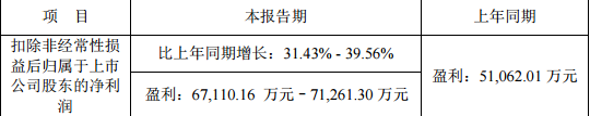 2018年半年度业绩与上年同期相比下降的主要原因是上年同期转让了北京普莱德新能源电池科技有限公司(以下简称“普莱德”)的股权取得的处置收益影响。此外,扣除转让普莱德非经常性损益后归属于上市公司股东的净利润为67110.16万元—71261.30万元,比上年同期增长31.43%—39.56%。具体如下:
