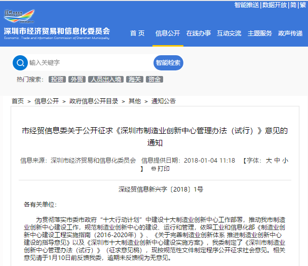 深圳市制造业创新中心管理办法(试行)(征求意见稿)