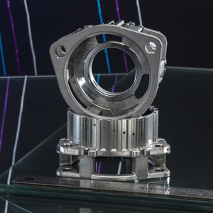 获得该奖的是ARC Group Worldwide 为Honor Defense制造的低合金钢钣机。近75毫米(3英寸)长手枪部分由几个复杂的轮廓组成,包括薄的横截面面积。通过烧结不可能保持零件无扭曲。利用高分辨率多视点摄像机系统优化了多个次级过程,对每个轮廓进行微调以满足要求,并且与原始加工相比仍能带来成本效益。
