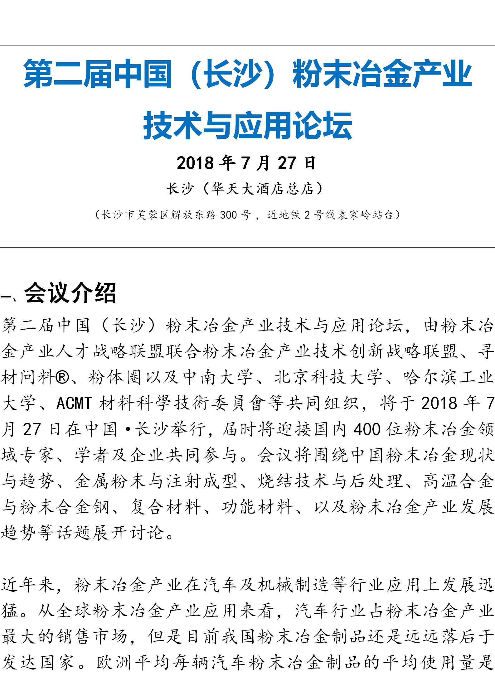 看完了2018年MPIF获奖作品,你是否想了解更多行业资讯,想跟专业人士共同探讨行业发展?那么,快来了解一下由粉末冶金产业人才战略联盟主办,粉末冶金产业技术创新战略联盟、寻材问料®、粉体圈联合主办的“2018第二届中国(长沙)粉末冶金产业技术与应用论坛”吧!论坛将于2018年7月27日在湖南长沙举行,欢迎业内人士报名参加,与行业专家沟通交流,共同构筑粉末冶金产业发展蓝图!