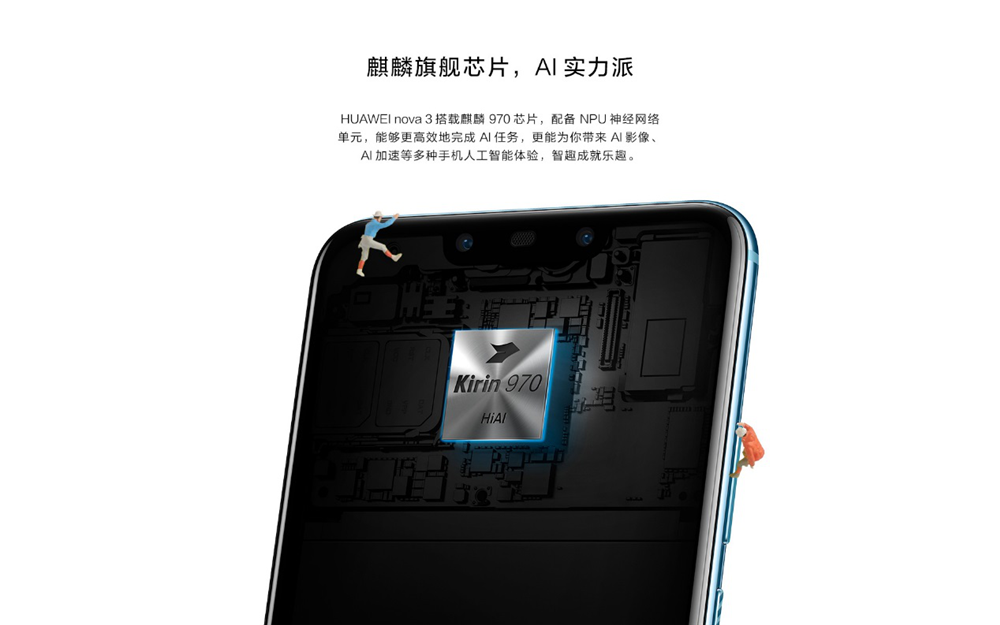 华为nowa3内置台积电10nm制程工艺打造的人工智能麒麟970智慧芯片,拥有6GB内存+128GM储存。