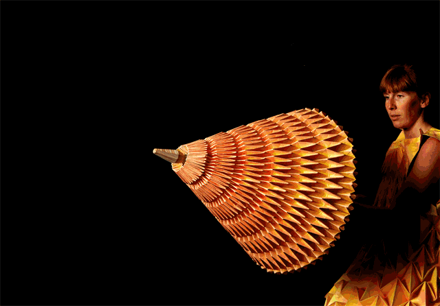 这是一把出自德国“褶皱大师”Jule Waibel之手的“纸”伞 - 特殊的折叠技术使得Tyvek®材料能够在平面和三维间轻松转化,灵活伸缩,跟随身体的移动而变化形态,充满了艺术动感。