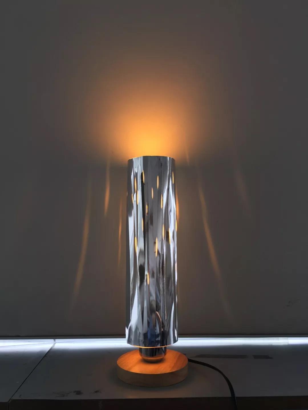 产品利用了YUPO纸镜面的特性,借鉴现代雕塑造型语言,塑造了具有流动、跳跃的光感。通过表面的褶皱肌理和镂空,融合了刚与柔、暗与明。当打开灯时,看似不透光的表面从缝隙中透出点点光斑,给人惊喜,充满遐想。