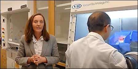 机械工程系教授Kelsey Hatzell和博士后申凤玉(音)在Hatzell油墨和界面实验室工作