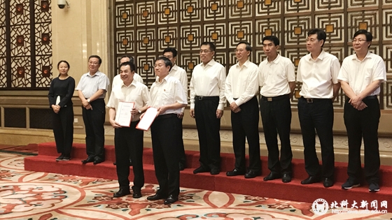2018年7月18日上午,北京高校学科共建签约仪式在北京会议中心举行。北京高校书记、校长、主管学科建设的副校长、学科建设部门负责人共计约180人参加了本次签约仪式。会议由北京市副市长王宁主持,市委常委、教工委书记林克庆出席会议并讲话。北京科技大学党委书记武贵龙、副校长吴爱祥参会。