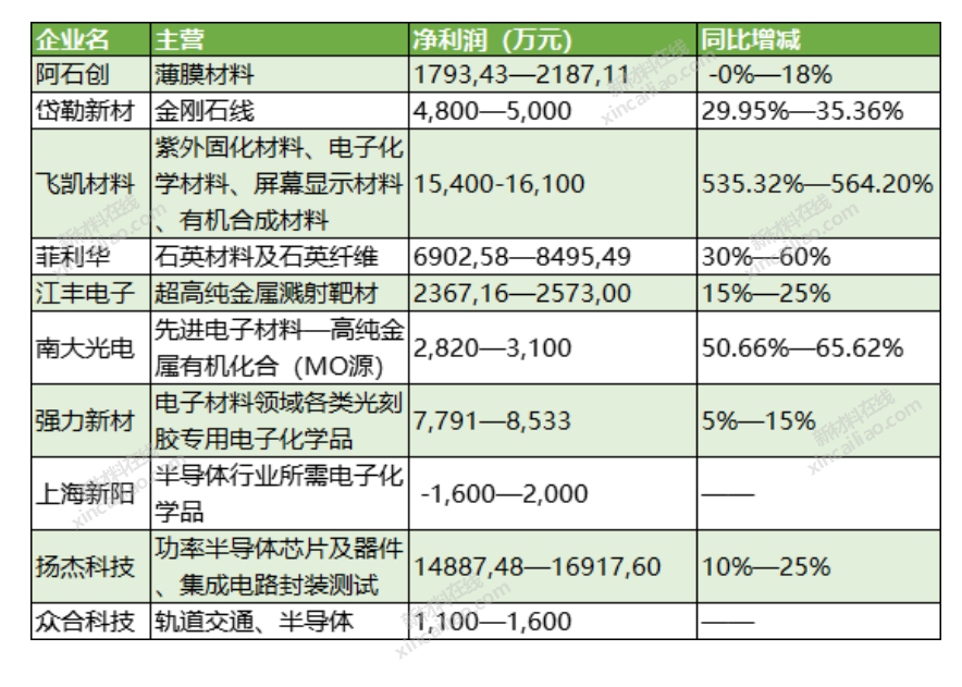 为此,新材料在线®整理了10家半导体材料行业上市企业的上半年业绩预告,以供大家对该行业有进一步的了解。