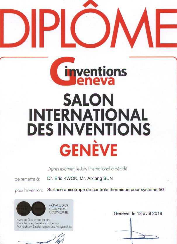 在4月11日至15日举办的第46届日内瓦国际发明展上,鸿富诚及合作伙伴参展的“用于5G系统的各向异性导热硅胶垫片”项目获国际专家评审团一致认可,并授予日内瓦国际发明展金奖(Gold Medal)。