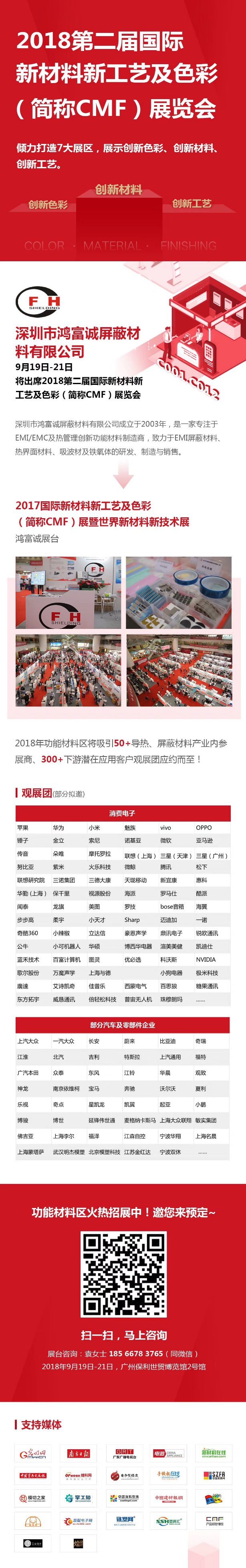 值得一提的是,在2018第二届国际新材料工艺及色彩(简称CMF)展览会上,鸿富诚也将在国内首次展出这一创新的导热材料以及有低应力的导电衬垫、可自动化的SMT导电泡棉、低应力的导热硅胶、可返修导热凝胶、轻质化导热硅胶垫等材料。