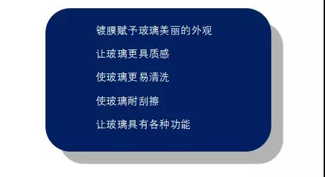 -镀膜:在玻璃的一个或两个表面上,用物理或化学的方法镀上金属、金属氧化物等的薄膜而制成的玻璃深加工制品。
