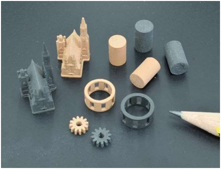 图中是奥地利Lithoz公司使用模拟月球风化岩打印的陶瓷产品。奥地利Lithoz公司是URBAN研究月球基地3D打印的成员。灰色物品是“绿色”物品,未烧结(烘烤);浅棕色物品已经烧结。图片来源:欧洲航天局