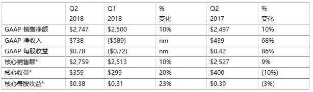 *核心业绩措施是非GAAP财务措施。GAAP措施和非GAAP措施之间的调整请见随新闻稿一并发布的表格,也可参见公司网站。