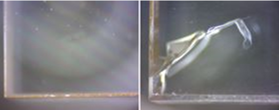 如图所示,可以观察到钕-氧化铝(左)优异的抗热冲击性,其在40W功率下应用808nm的光泵浦时未显示产生裂纹的迹象。而钕-YAG(右)在25W时发生断裂。