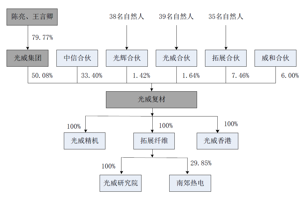 注:陈亮持有光威集团股份12.18%,王言卿继承丈夫陈光威持有的光威集团67.59%的股份(陈光威于2017年4月22日去世),陈亮与王言卿为母子关系