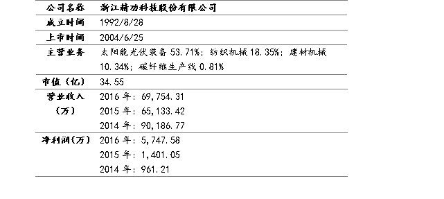 光威复材全资子公司威海光威精密机械有限公司(以下简称“光威精机”)具有非标设备计和生产、压力容器和压力管道的设计和安装、对外机械加工的强大实力,目前主要为光威复材及威海拓展提供成套生产设备的设计、制造和安装以及生产线建设服务。2016年,公司总资产1个亿,净利润-198万。