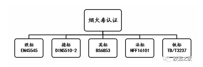 轨道交通行业要求,其使用的产品必须通过“烟火毒认证”,目前业内的认证分为以下五种: