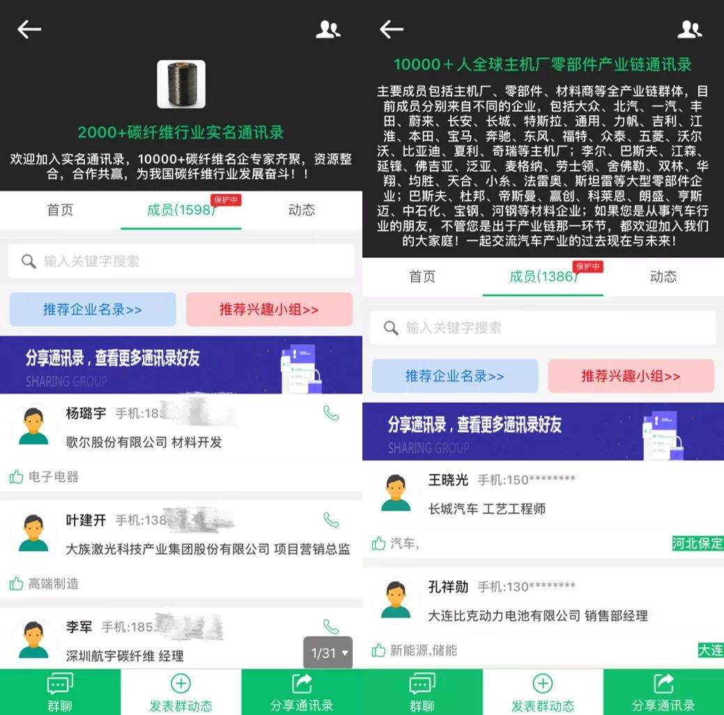 目前已有近百个容量1500+的垂直行业通讯录,经理级别人群占比50%以上。您可以通过搜索关键词加入,或自行创建通讯录。