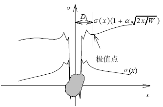 损伤影响失效判据可表述为:当缺口(或损伤)附近特征点处的加权法向应力达到层压板的破坏强度时,含损伤层压板出现破坏(见图4),其数学表达式为