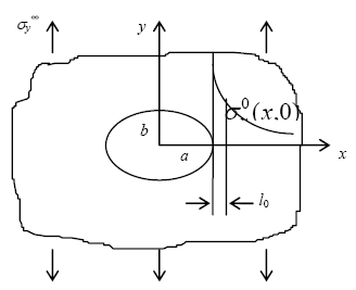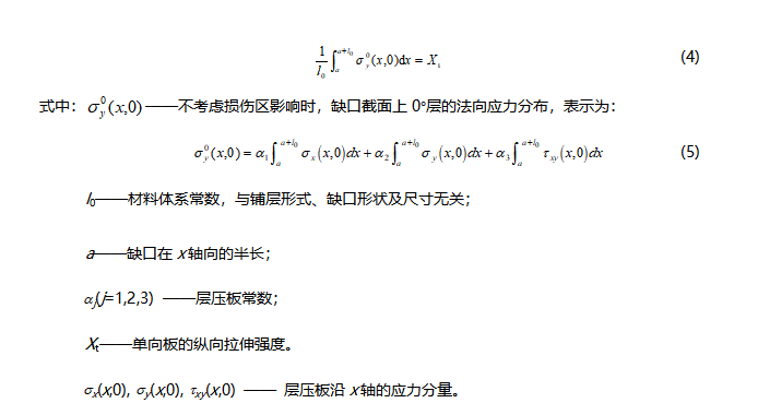 损伤区纤维断裂(FD)失效判据可表述为:当缺口(或损伤)附近特征长度l0范围内0°层的平均法向应力(见图5)达到单向板的极限强度时,含损伤层压板出现破坏,其数学表达式为: