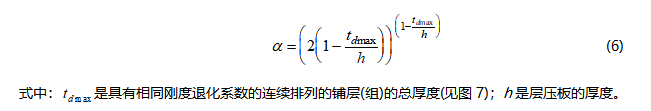 e) 利用DI失效判据估算压缩强度。损伤影响距离Di的含义见图4。对含冲击损伤的层压板,为计及分层沿层压板厚度方向分布的影响系数,定义为