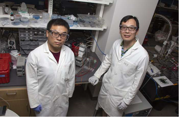 图为博士生Wei Gong和机械工程副教授Sheng Shen在实验室。图片来源:卡内基•梅隆大学工程学院