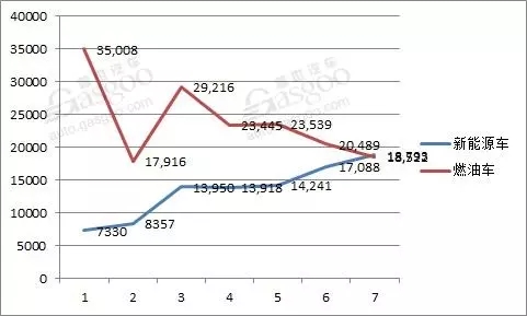 相较于燃油车,业界可能更为关注比亚迪在新能源汽车市场的表现。在秦、唐、宋DM等主力新能源车的带动下,比亚迪新能源车7月销量达到18,793辆,对比去年同期增长了7000余辆。其中,新能源乘用车18,203 辆,包括纯电动车8,176辆,插电混合动力车10,027辆。结合此前数据可以看到,1-7月,比亚迪新能源车销量持续上涨,经过一路追赶,在7月份超出燃油车销量。不过由于年初表现不佳,其前7月累计销量依然远远落后于燃油车。