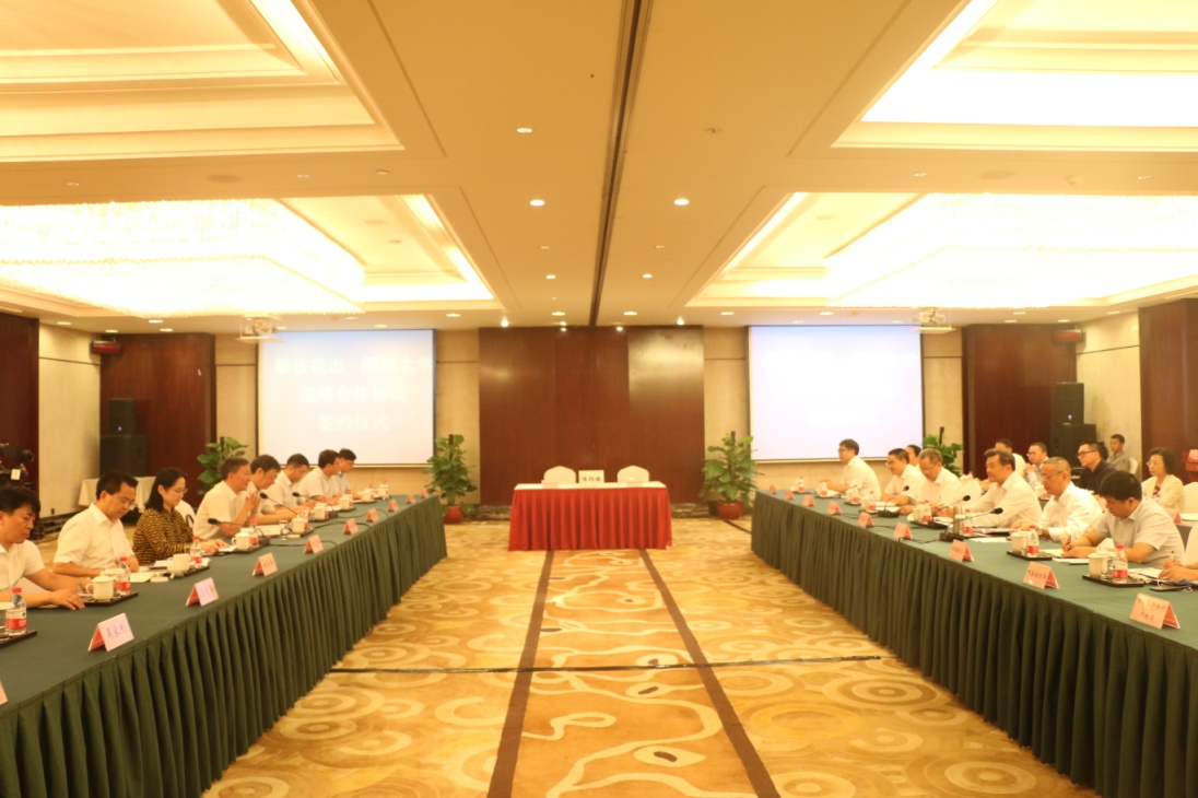 7月30日,四川大学与攀枝花市人民政府在攀枝花签署战略合作协议,攀枝花市委书记贾瑞云,市委副书记、市长王波,校长李言荣,校党委副书记、纪委书记陈志坚,副校长李蓉军出席签约仪式。双方将共同推进科技成果在攀枝花转移转化,共建钒钛产业创新平台,共同推进攀枝花康养产业发展,推动四川大学科研、人才、教育、医疗卫生优势资源与攀枝花深度融合,促进双方高质量发展。副市长刘建明主持签约仪式。我校材料科学与工程学院院长刘颖、副院长吴家刚,校办主任李中锋,科研院院长褚良银,医管处处长杨志刚,外联办主任荣建国等参加了活动。