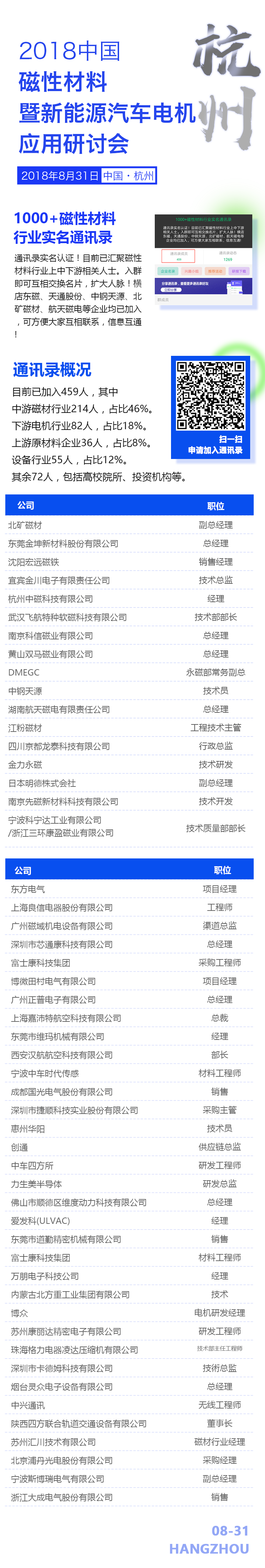 2018中国磁性材料暨新能源汽车电机应用研讨会-专属通讯录