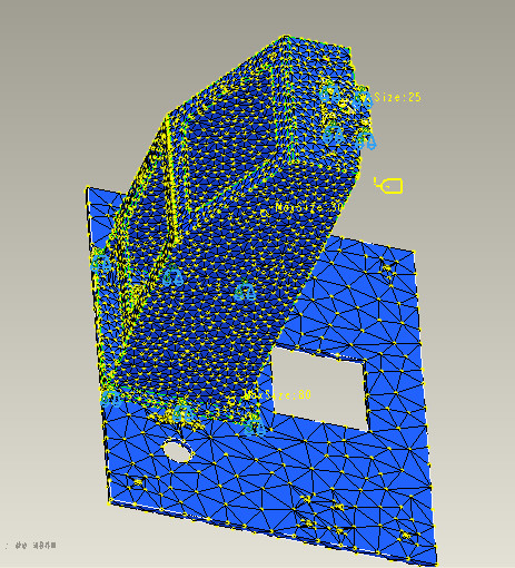 求解算法受限于模型大小、计算机性能以及工作时间,采用P法计算。此计算法适用于静力学分析,对网格要求不明显主要通过提高收敛阶次提高运算精度。此次计算采用6阶次收敛、误差10%。(proe4.0的mechia模块)