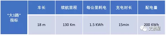 北京公交 1 路,是行驶在长安街的“国线”,北京公交公司财力雄厚,主要要求对电池性能使用便利化,选用银隆钛酸锂快充动力电池组客车替代原有车型。该车型充电车辆长度达到 18 米,行驶用电量每公里约 1.5 度电,车辆从老山站出发到达终点站四惠站,全长 27.1 公里,往返需要 85 度电。“大 1 路”车辆配置了高安全、高稳定的钛酸锂快充动力电池组,15 分钟即可完成整车充电,最大续航里程可达 130 公里。