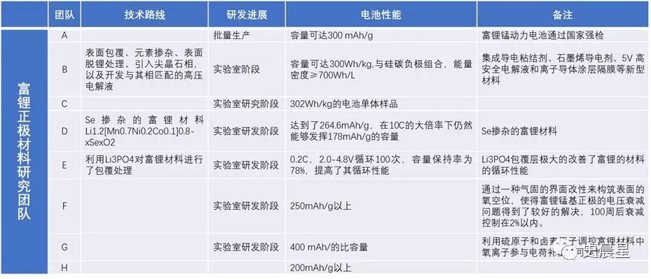 富锂锰基固溶体正极材料的化学式为 xLi2MnO3·(1-x)LiMO2,其中 M 为过渡金属Mn(锰)、Ni(镍)、Co(钴)、Ni-Mn(镍-锰)等,其比容量高达 300 mAh/g,且热稳定性高,远高于目前三元的 200 mAh/g。