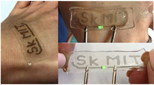 第二种方法克服了高应变下的低电导率,并确保了高透明度。此外,它可以用于在不改变电性能的情况下需要电极在拉伸过程中的稳定性能的应用。来自Skoltech学校的博士学生也是该论文的第一作者Evgenia Gilshteyn称:“在这项工作中,我们报道了新的透明的、可拉伸的、导电的和生物相容的水凝胶,这些水凝胶被SWCNT薄膜修饰,为可穿戴的和类似皮肤的电子产品制造无源电极和有源传感器。我们在此介绍一种一次性、通用和适用的SWCNT /水凝胶结构制造方法,能够承受高达100 %应变的内在拉伸。我们的SWCNT薄膜图案化方法使得有可能制造大面积的电子电路,以及各种可穿戴设备,包括电子皮肤。”