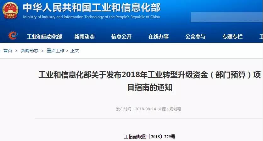 为加快推进供给侧结构性改革,促进产业转型升级,工业和信息化部决定组织实施2018年工业转型升级资金(部门预算)重点项目。现将有关事项通知如下:
