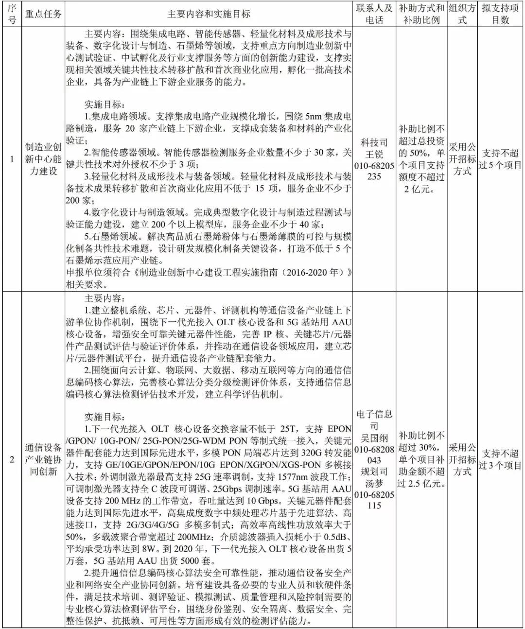 围绕制造强国建设目标,主要支持制造业创新中心能力建设、产业链协同能力提升、产业共性服务平台、新材料首批次应用保险4个方面共13项重点任务(详见附件1)。