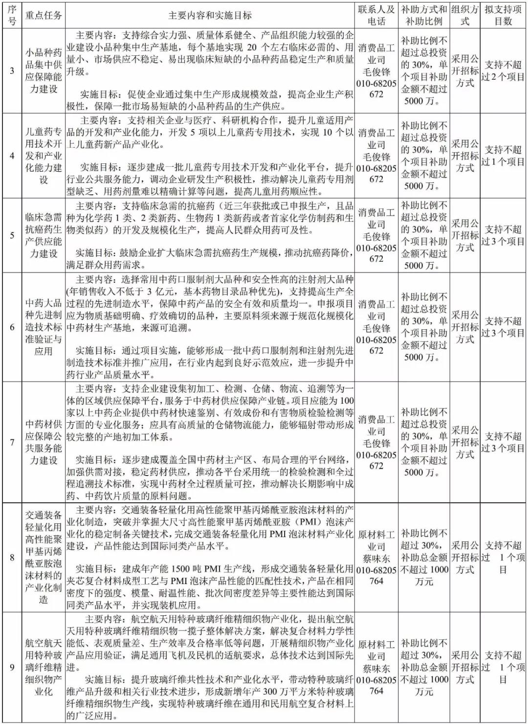 按照实施制造业供给侧结构性改革的要求,重点支持信息通信业产业链配套、小品种药儿童药抗癌药供应保障、中药质量提升与保障能力建设、重点新材料产业链能力提升等。