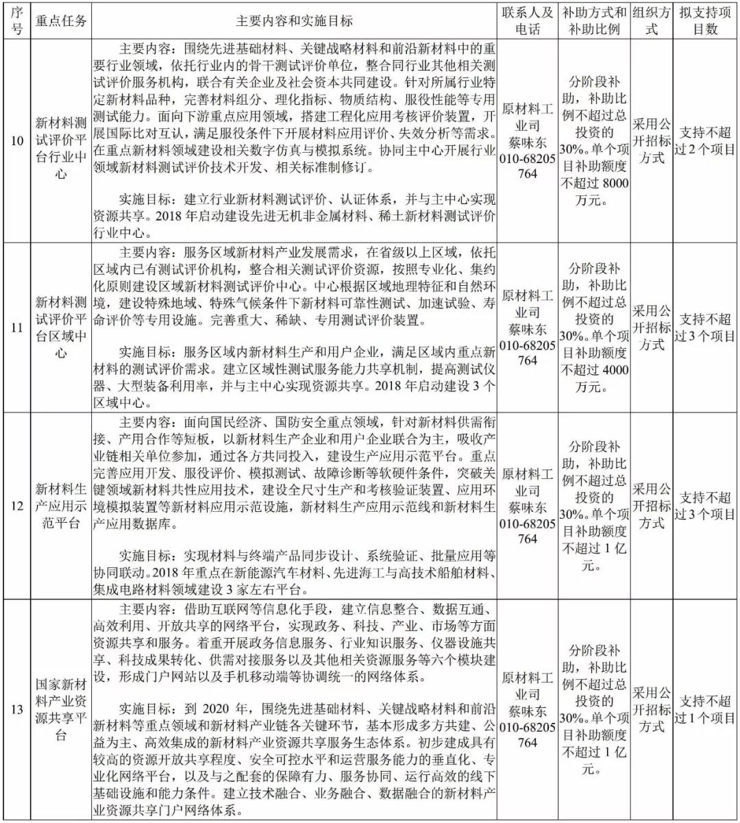 围绕先进基础材料、关键战略材料和前沿新材料的重点领域,重点支持新材料产业测试评价、生产应用示范、资源共享等公共服务平台建设,提升新材料产业创新和保障能力。