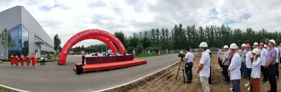 2018年8月16日,康得复材廊坊二期,年产12500吨碳纤维复合材料项目,预浸厂房及树脂车间开工仪式隆重举行。