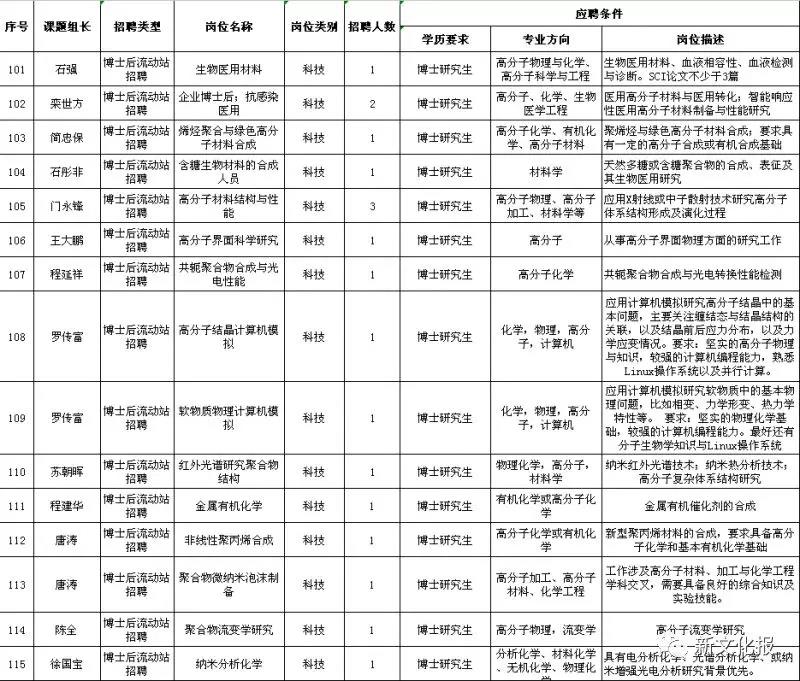 根据科研部署与发展规划需要,中国科学院长春应用化学研究所现面向社会招聘事业编制人员及博士后,共154人。