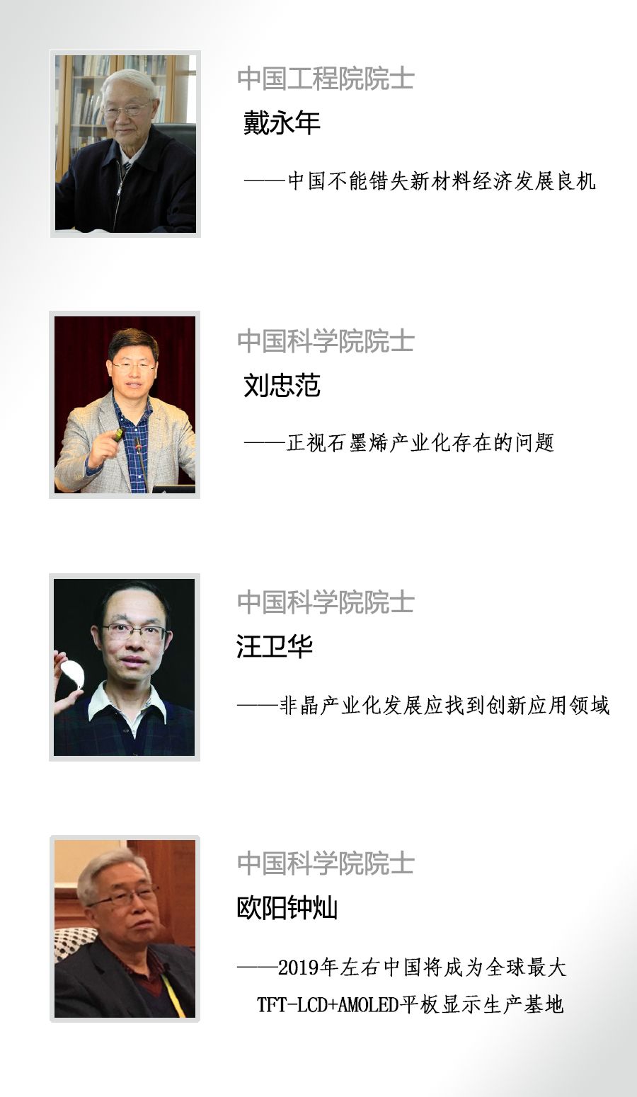 戴永年、刘忠范、汪卫华、曹镛、欧阳钟灿等院士,对中国新材料行业目前良机、石墨烯现存问题、非晶产业化、新能源汽车发展等问题进行详细的分析,并且发表了自己的独特见解。