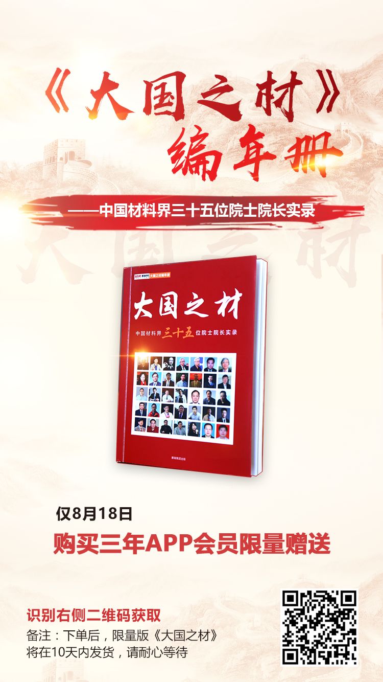 《大国之材》不仅是对我国材料人和材料产业光辉历程的一次回眸,更是对每一位材料人为建设材料强国,打造“大国之材”,为实现中华民族伟大复兴而努力奋斗的鞭策和激励。
