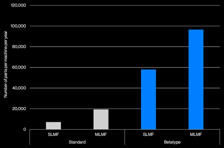 除了将零件设计为堆叠模型外,Betatype还利用其专业知识优化构建过程的其他方面。正如该公司指出:“通过特定的控制参数,每层中的部件暴露于激光有效熔化部件的单个刀具路径中,显着减少,两者之间的延迟最小 。这与Betatype的优化算法和过程IP相结合, 将每个部件的构建时间从每个部件的1小时减少到不到5分钟。这比使用标准构建处理器快10倍 。”